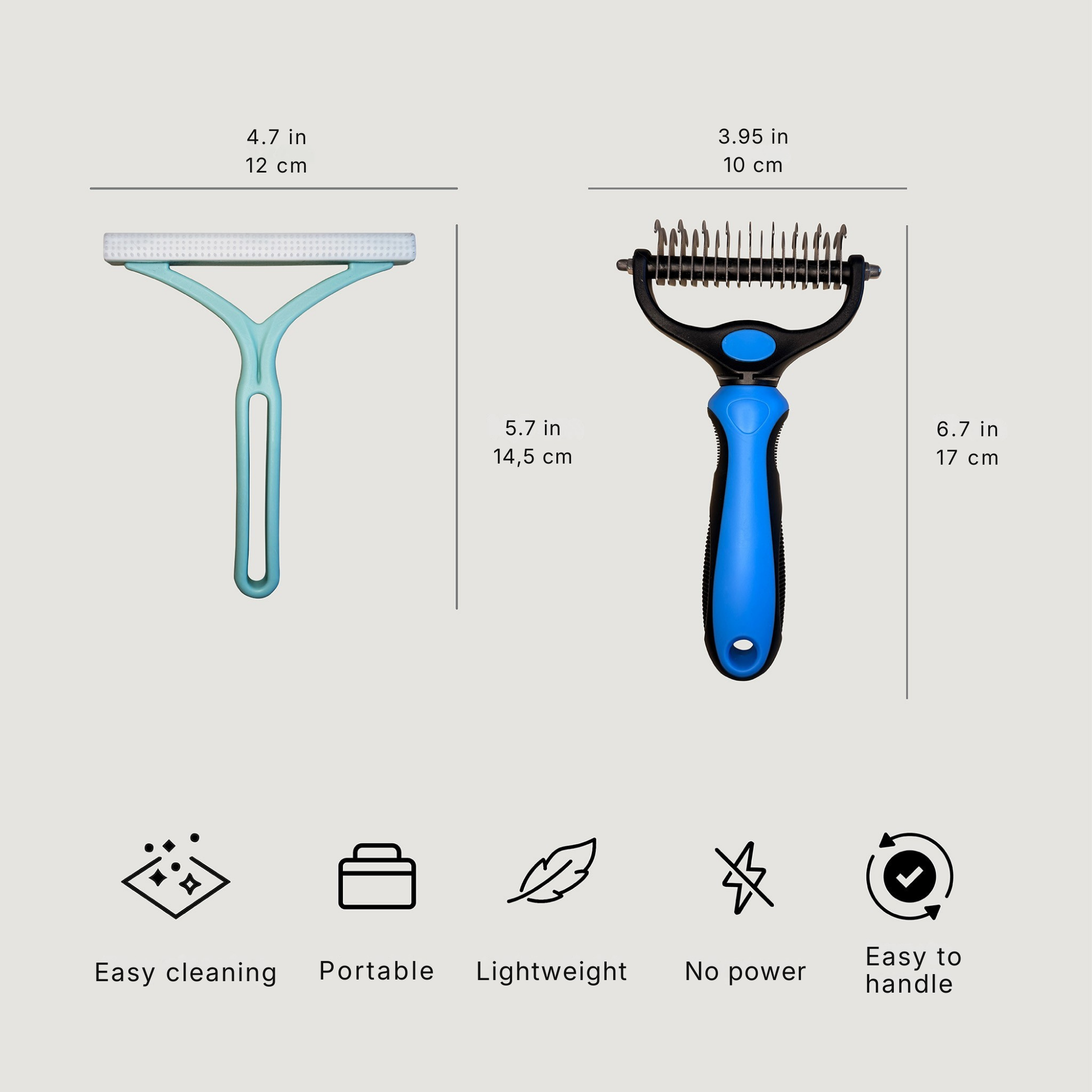 Both tools are designed for long-term use with no consumable parts. A practical alternative to disposable lint rollers and battery-powered devices.